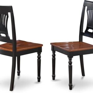 East West Furniture PVC-BLK-W Plainville Dining Chairs – Stylish Back Wooden Seat Chairs, Set of 2, Black & Cherry