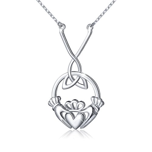 Ladytree S925 Sterling Silver Celtic Love by Kelly Hands Holding Crown Heart Claddagh Pendant Y Necklace