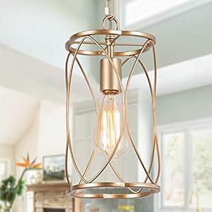 UncategorizedGEPOW Gold Cage Pendant Lighting, Antique Golden Modern Hanging Light Fixture for Kitchen Island, Hallway, Dining Room, Foyer and Bedroom