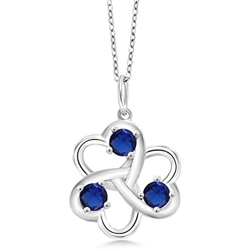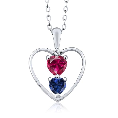 Gem Stone King 925 Sterling Silver Round Blue Created Sapphire 3 Hearts Interlock Pendant Necklace For Women (0.75 Cttw, With 18 Inch Silver Chain)						 Gem Stone King 925 Sterling Silver Red Created Ruby Blue Created Sapphire and White Topaz Pendant Necklace For Women (1.11 Cttw, Gemstone July Birthstone, Heart 5MM and 4MM, with 18 Inch Silver Chain)