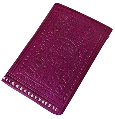 Moroccan Handmade Leather Wallet Carved Bi-fold Large Folding Magenta
