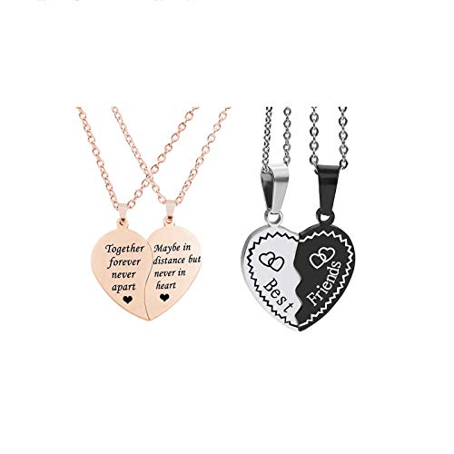 MJartoria Bundle BFF Necklace for 2-Split Valentine Heart Necklace Split Heart Silver Black Best Friends Forever Pendant Friendship