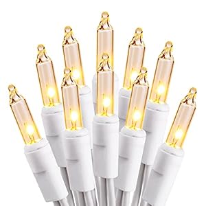 Incandescent Mini Christmas Lights: 150 counts mini string lights on white wire with soft warm white lighting, create a warm and festive holiday, Christmas atmosphere. 2 sets of 300 counts in the package, with 2.5V bulbs and 3A fuses, and with spare bulbs and fuses.
