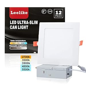 UncategorizedLeelike 12 Pack 6 inch 12W Dimmable Square LED Can Light Retrofit with Junction Box, 960lm/CRI85 Ultra Thin LED Downlight 5CCT 2700K-5500K Adjustable with a Simple Switch IC Rated,ETL Certified