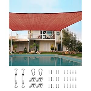 Hardware Kit for Easy Installation – A set of hardware kit and 4 pcs ropes (1.5m long) are wrapped in the box, help to build and install your shade sail awning to proch, tree, pole, roof, stucco wall, brick wall and so on. Relatively quickly and easily. Make the shade sail to be sturdy enough to hold up to wind, rain.