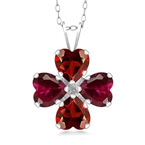 Gem Stone King 925 Sterling Silver Red Garnet and Red Created Ruby 4 Heart Shape Gemstone January Birthstone Pendant Necklace For Women (3.72 Cttw, 6MM Heart, with 18 Inch Silver Chain)