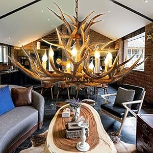【Beautiful Antler Chandelier 8 Light】 Resin antler chandelier lighting has 8 E12 lamp holders. Our rustic deer horn chandeliers can be arranged according to your preferences. The layers are distinct and the effect of turning on the lights is very beautiful. (Bulb not included)
