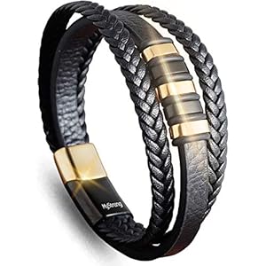 MyStrong Genuine Leather Mens Bracelet – Premium Braided Leather Bracelet for Men and Women with Stainless Steel Magnetic Clasp – Multi-layer Braided Bracelets for Men – Leather Cuff Boys Bracelet