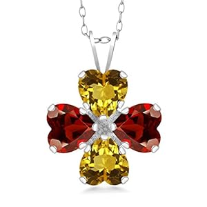 Gem Stone King 925 Sterling Silver Yellow Citrine and Red Garnet 4 Heart Shape Gemstone November Birthstone Pendant Necklace For Women (3.24 Cttw, 6MM Heart, with 18 Inch Silver Chain)