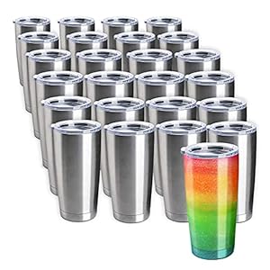 UncategorizedPixiss Double Wall Tumbler Cups Bulk (25 pack) – 20 oz Stainless Steel Hot and Cold Tumblers – Reusable Cups With Lids for Stainless Steel Tumbler Cups, Tumbler Painting, Glitter, Vinyl and More