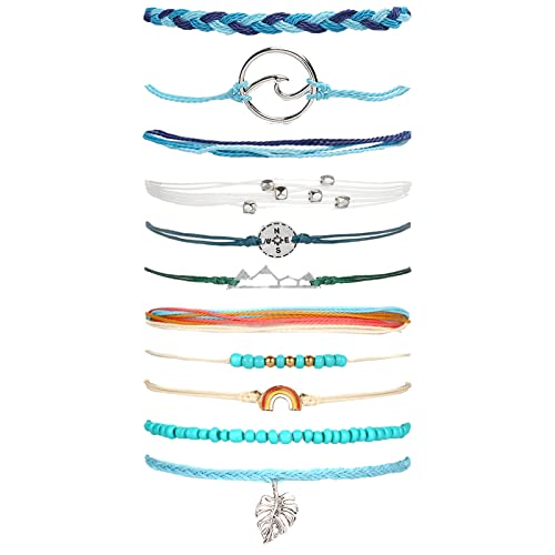 HUASAI 3 Set Wave Surfer Vsco Bracelet Mountain Sunflower Leaf Braided Rope Bracelet Set Adjustable Friendship Bohemian Handmade Bracelet Waterproof for Women Men (set 5)