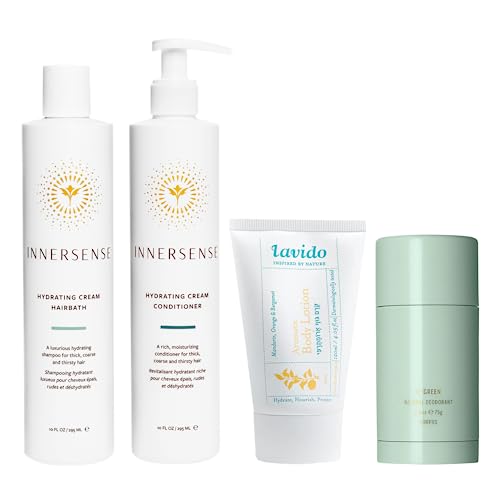 INNERSENSE Organic Hydrating Shampoo, Conditioner + Lavido Aromatic Body Lotion + CORPUS Nº Green Deodorant VALUE Bundle