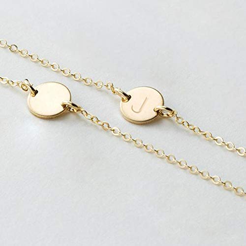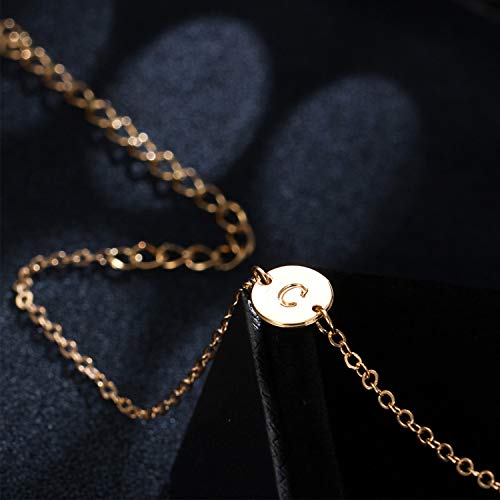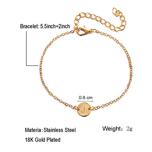 18K Gold Plated Stainless Steel Initial Bracelet Personalized Letter J Charm Bracelet Small Dainty Disc Monogram Name Bracelet for Women