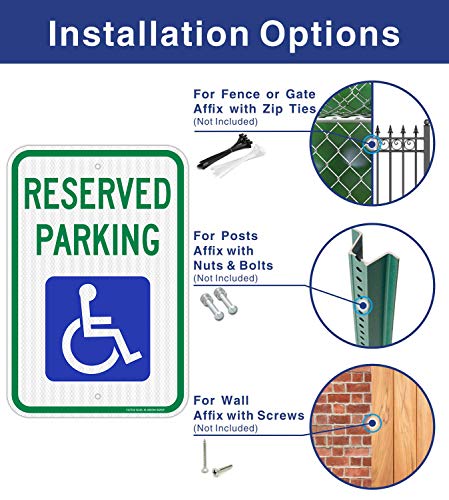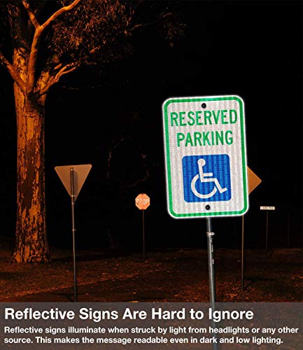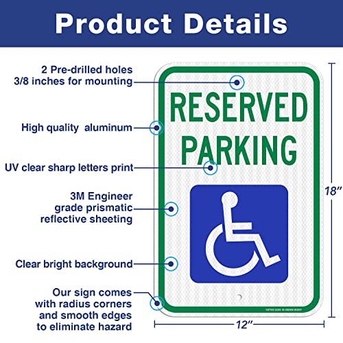 (2 Pack) Reserved Parking Sign, Handicap Parking Sign, with Picture of Wheelchair Sign, 18 x 12 Engineer Grade Reflective Sheeting Rust Free Aluminum, Weather Resistant, Waterproof, Durable Ink