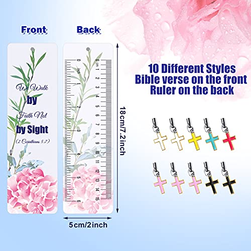 20 Pieces Bible Verses Inspirational Scripture Bookmark Motivational Positive Page Marker with Cross Pendants for Church Supplies, Schools and Ministries (Flower Style)