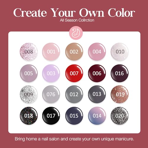【Perfect Application】 20 popular and fashionable colors, and more than 15,000+ shade combos can be designed, suitable for party or professional applications like wedding events, photo shoots, Parties, nights out, and daily daytime Use. With flawless coverage these premium dip powders and your nails will look brilliant shiny finish, lightweight, and more attractive, you will look naturally gorgeous and beautiful.