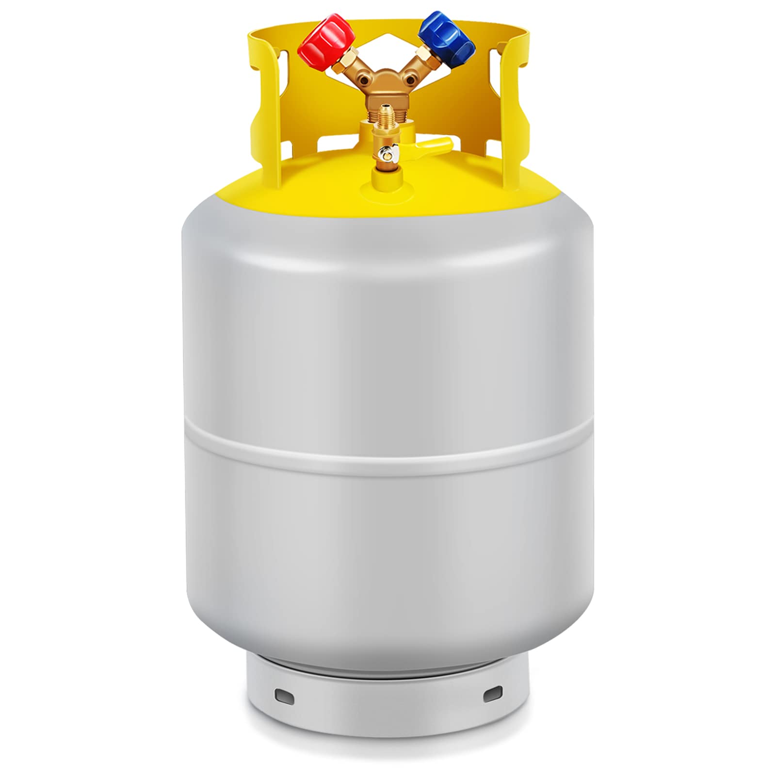 50 LB Refrigerant Recovery Tank for R410a, R12, R22, R134, Freon Recovery Tank AC Recovery Tank with Double Valve Recovery Can for Liquid/Vapor Reusable Cylinder Tank and 1/4 Sae Y Valve Gray Yellow