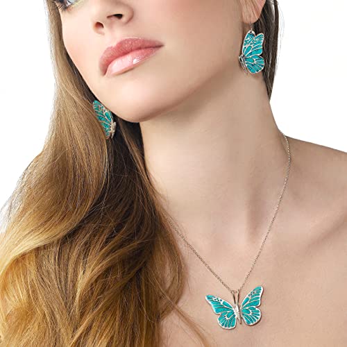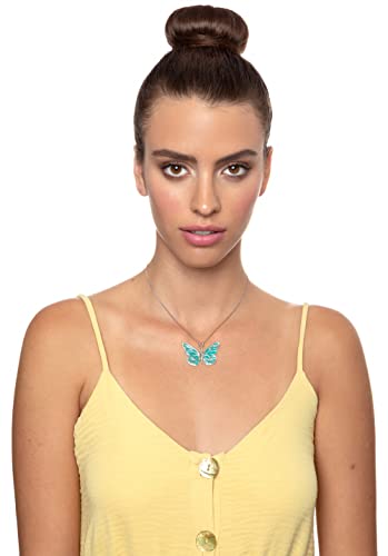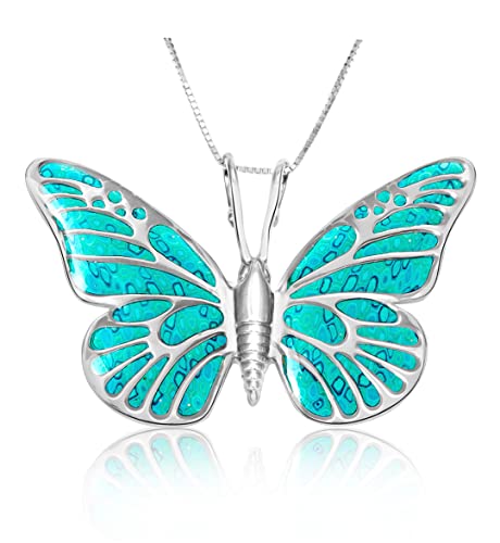 925 Sterling Silver Butterfly Necklace Pendant Sea Green Polymer Clay Handmade Jewelry, 16.5″