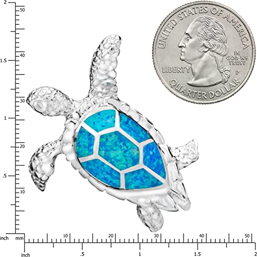 925 Sterling Silver Cubic Zirconia Blue Opal 3D Sea Turtle Necklace Pendant with 18″ Box Chain, Nickle Free Hypoallergenic for Sensitive Skin, Hawaii Jewelry for Women, Gift Box Included