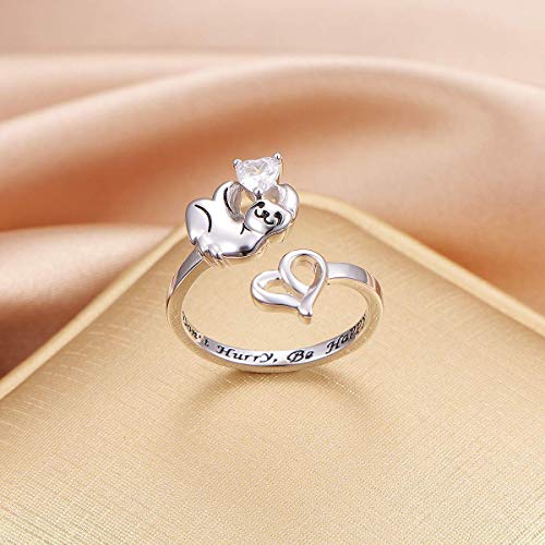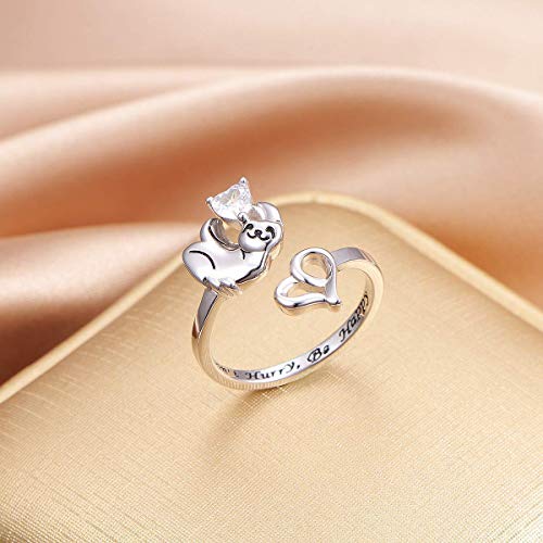 925 Sterling Silver Cute Animal Sloth Heart Ring and Necklace Set for Women Girls