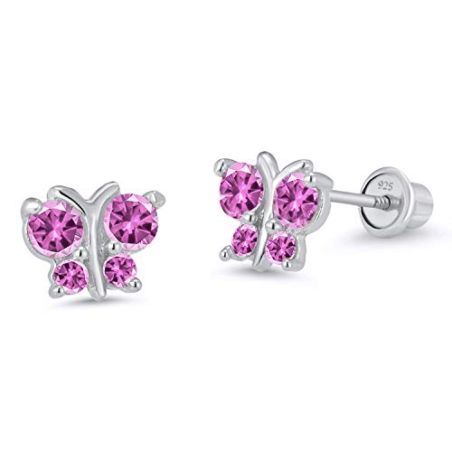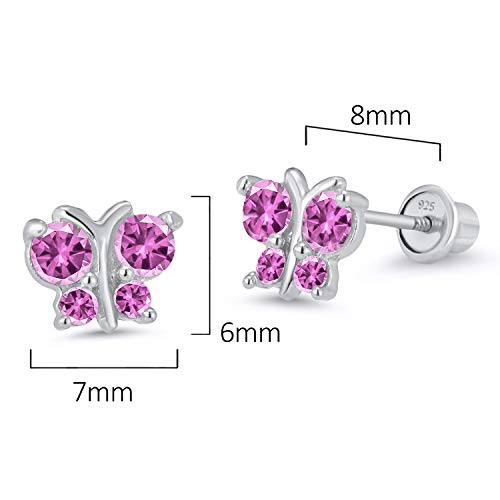 925 Sterling Silver Rhodium Plated Butterfly Cubic Zirconia Stud Screwback Baby Girls Earrings