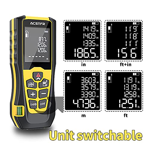 ACSTFR Laser Distance Measure, 165ft Laser Distance Meter, Area Volume and Curved Path Measurement, M/in/Ft Unit Switch with HD LCD Display
