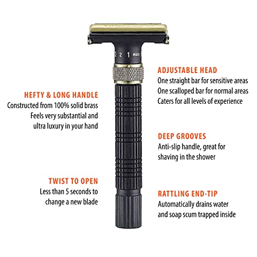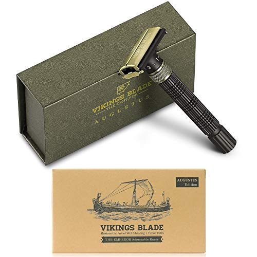 Adjustable Double Edge Safety Razor, The Emperor by VIKINGS BLADE, Long & Fat Handle, Butterfly Twist-To-Open, Eco Friendly, Luxury Case. Smooth, Close, Clean Shaving Razor (Variation: Augustus)