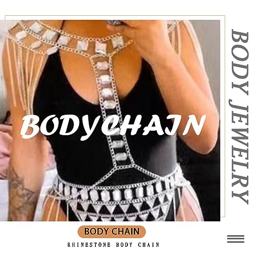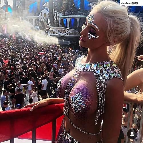 Elevate your festival or nightclub outfit with the Aiosy Sparkly Rhinestone Body Chain Bra. This stunning piece features shimmering rhinestones, tassel chest chains, and a backless design that will turn heads wherever you go. Perfect for layering over mesh tops or bikinis, this sexy harness body accessory is a must-have for those looking to make a statement. Stand out in style with this dazzling crystal body chain.