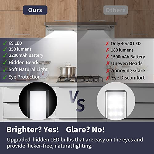 šŸ’” Upgraded Eye-Care LED Light: Our 6000K soft white 69LEDs (up to 350 lumens) under cabinet lighting features hidden LED bulbs that are easy on the eyes and will provide your kitchen, closet or cabinets with flicker-free, natural lighting.