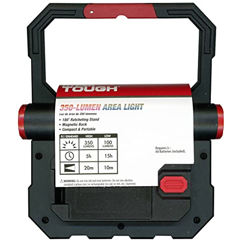 This Hyper Tough 350-Lumen Area Work Light is designed for construction work, emergency use, roadside assistance, camping & outdoor use. This compact and lightweight work light produces 350 lumens of light and can be used in damp locations. 2 Modes: High, Low Powerful magnetic on back for hands free use Portable and powered by 3AA Batteries (Included) Area High Mode: 350LM5Hours20Meters, Area Low Mode: 100LM15Hours10Meters 180° Ratcheting Stand 1-meter impact resistant Dimensions: L5.91 inchesx H3.82 inchesx W1.06 inches Perfect for Home or Outdoor Lighting, Car or Truck Repairing, Camping, Hunting, Hiking, Barbecue, Fishing, Working on electronics, Machine maintenance, etc.