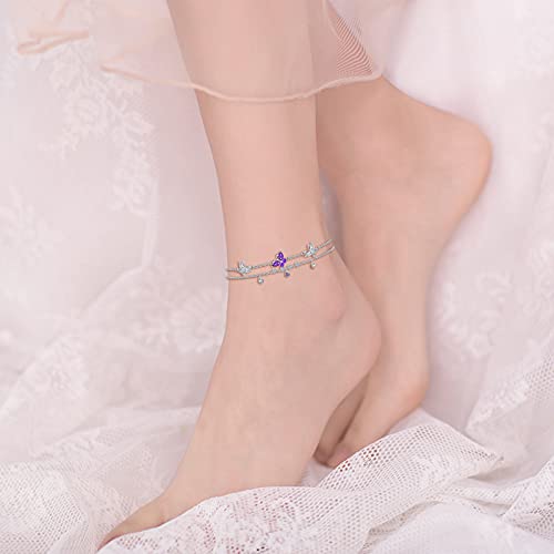 ATTRACTTO Butterfly Anklet Bracelets for Women 925 Sterling Silver Layered Anklets for Sea Beach Foot Ankle for Teen Girls Wife Girlfriend Mother