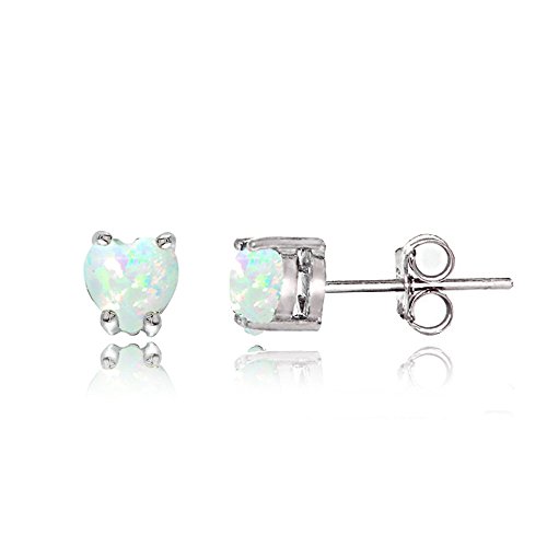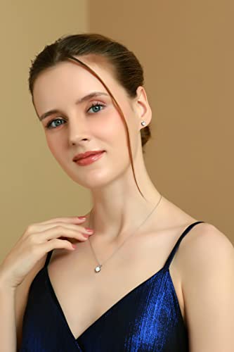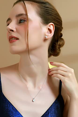 B. BRILLIANT Opal Necklace and Earrings for Valentines Day Sterling Silver Synthetic White Opals Heart Solitaire Jewelry Set for Women Girls Bridesmaids