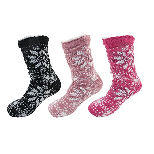 BambooMN Extra Thick Soft Cozy Fuzzy Thermal Cabin Plush Fleece-lined Fur Cuff Knitted Crew Socks