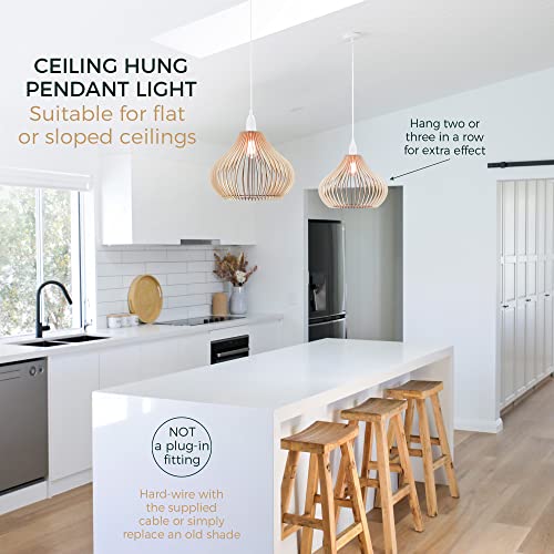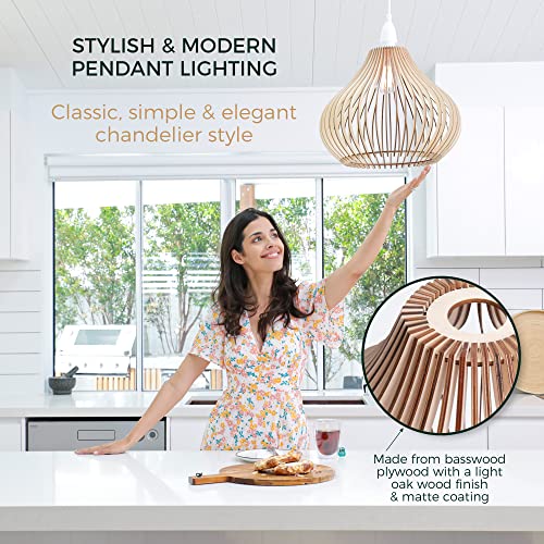 Bellaniks Wood Pendant Light – Easy-to-Assemble Ceiling Chandelier – Modern Boho Hanging Lamp Lighting Fixture for Dining, Kitchen, Bedroom, Living Room – Adjustable Nylon Cord, Uses Standard Bulb