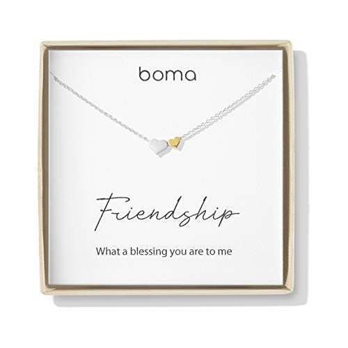 Boma Jewelry Sentiments Collection Friendship Sterling Silver Two Hearts with 14kt Gold Vermiel Necklace, 18 Inches