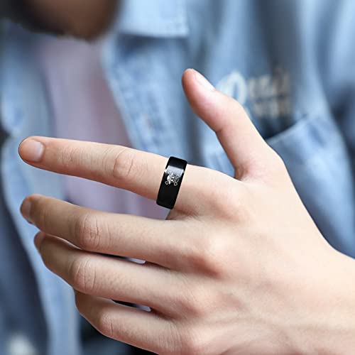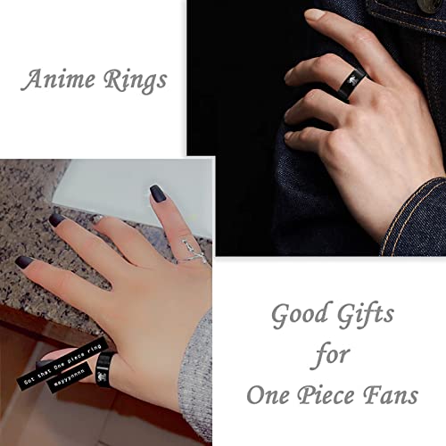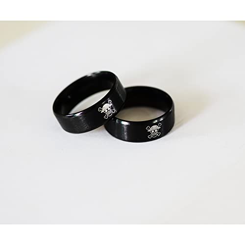 Black Stainless Steel One Piece Ring, Anime Rings for Men Straw Hat Luffy Anime Band Ring for Boys 8MM Anime Jewelry Accessories Size 9 (Luffy, 9)