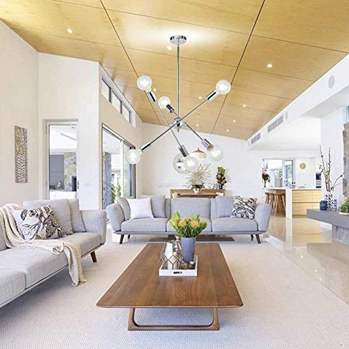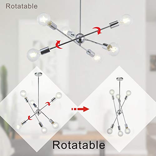 BONLICHT Modern Sputnik Chandelier 6 Lights Chrome Mid Century Pendant Lighting Vintage Industrial Farmhouse Ceiling Light for Kitchen Dining Room Entryway