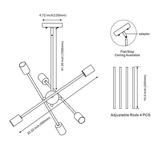 —Flat/sloped ceiling available:An adapter is included, compatible with sloped ceilings or parallel ceilings. You can adjust the hanging height as per your request.