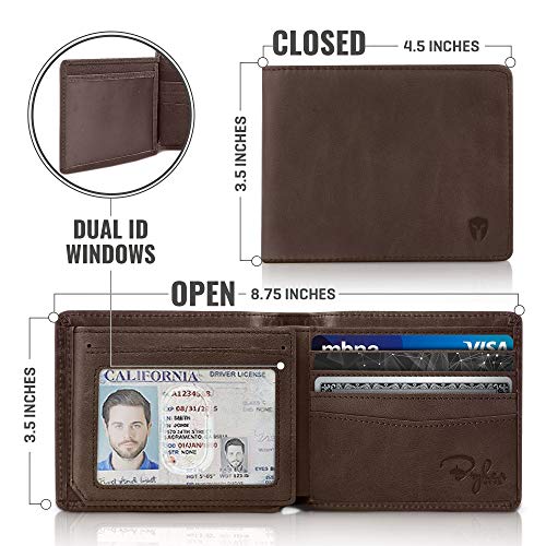 Bryker Hyde Executive 2 ID Window RFID Wallet for Men, Full Grain Leather, Bifold Top Flip, Extra Capacity Travel Wallet (Texas Brown – Distressed Leather, Medium)