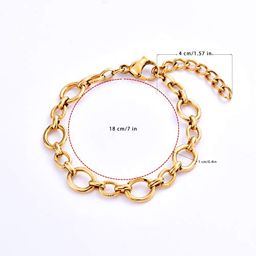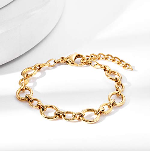 BUNSIKING Jewelry Women’s 14K Gold Plated 316L Stainless Steel Link Chain Bracelet