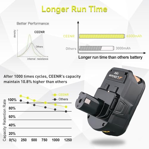 CEENR 2 Pack 6.5Ah P108 Replacement for Ryobi 18V Battery Lithium ion ONE Plus P108 P105 P102 P103 P107 P109 P104 Compatible with Ryobi 18 Volt Cordless Power Tool Blower Fan Battery High Capacity