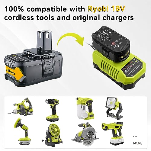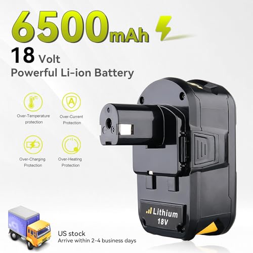 💫【100% Brand New】| Battery Type: Li-ion | Voltage: 18V | Capacity: 6500mAh | Wattage: 117Wh | 2Pack. Replacement for Ryobi 18V Battery