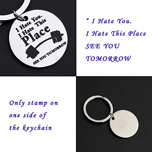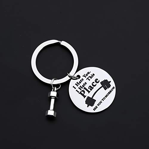 CENWA Funny Gym Workout Jewelry Fitness Trainer Gift Dumbbell Keychain I Hate You I Hate This Place See You Tomorrow Bodybuilding Jewelry Gift For Fitness Coach (I Hate This Place K)