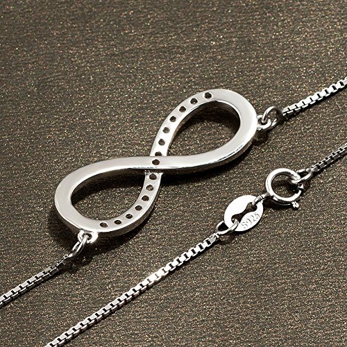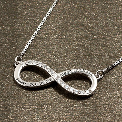 CharmSStory Mother Daughter Forever Love Infinity Sterling Silver Heart Necklace Pendant For Mom (I Love You To The Moon And Back)