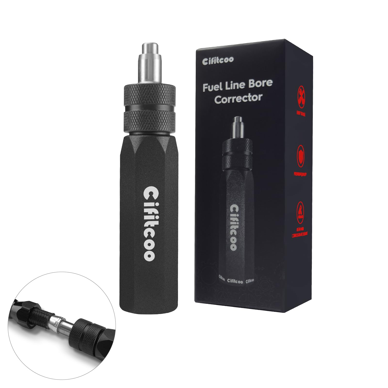 CIFITCOO Dual-Size PTFE Hose Assembly Tool, PTFE Hose Reaming & Separate Tool, Fuel Line Bore Corrector for 6AN & 8AN Fuel Lines, Black Anodized Aluminum, Oil resistant & Durable Design