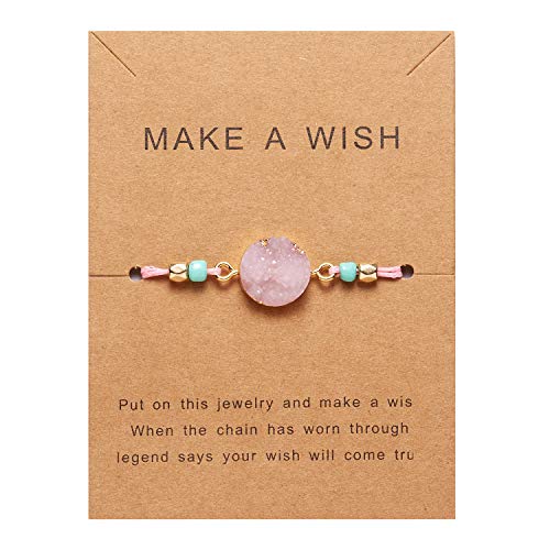 COLORFUL BLING 2pcs Resin Moon Crescent Round Natural Stone Bracelets Set Friendship Hand Woven Braided Stretch String Adjustable for Couples Lovers Personalized Wish Card Jewelry-Pink
