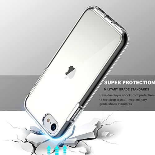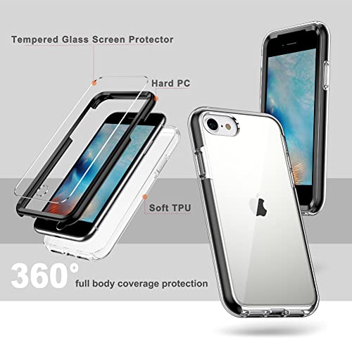 COOLQO Compatible for iPhone SE 2022/2020 Case 4.7 Inch, with [2 x Tempered Glass Screen Protector] Clear 360 Full Body Coverage Hard PC+Soft Silicone TPU 3in1 Protective Shockproof Phone Cover_Black