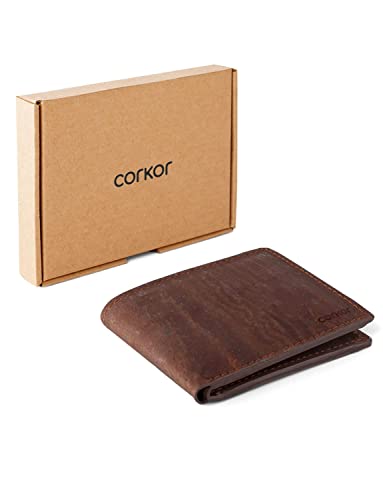 Corkor Slim Bifold Wallet for Men – Cork Wallet – Vegan Leather – Cruelty Free – Brown