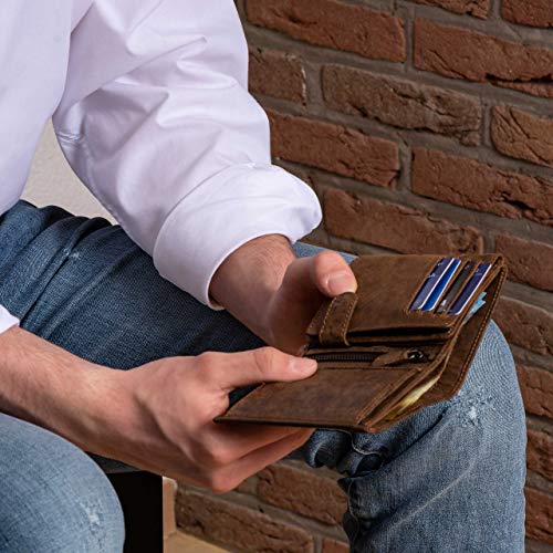 DiLoro Full Size Mens Wallets Italy Bifold Flip ID Leather Wallet Vertical Slots Coin and Zip Compartment RFID Blocking (Dark Hunter Brown)