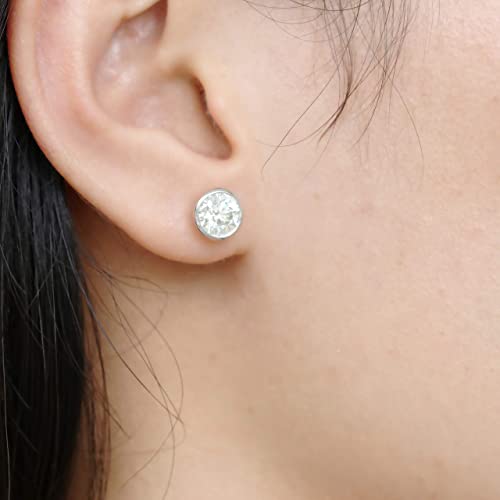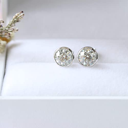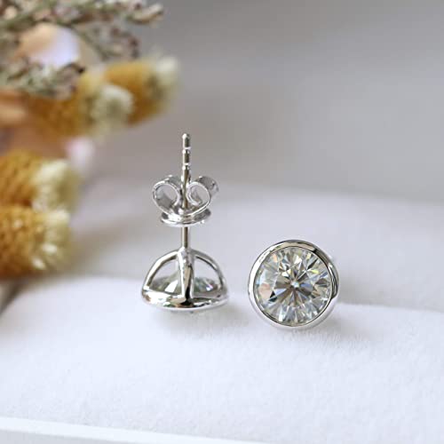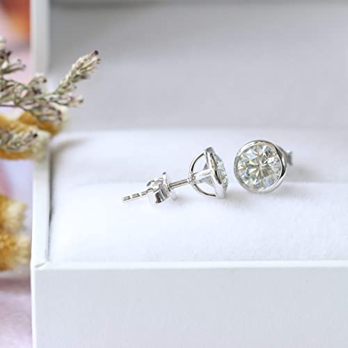 DovEggs 10K White Gold Post 2ct 6.5mm Blue Moissanite Stud Earring Bezel Setting Push Back k Gold QUALITY Silver Earrings for Men and Women